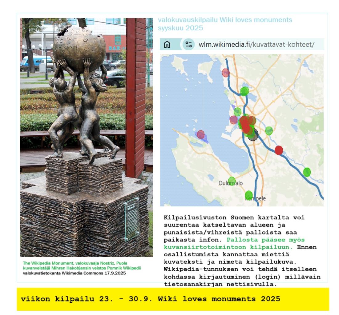 valokuvauskilpailu Wiki loves monuments 2025 Wikimedia Suomi
