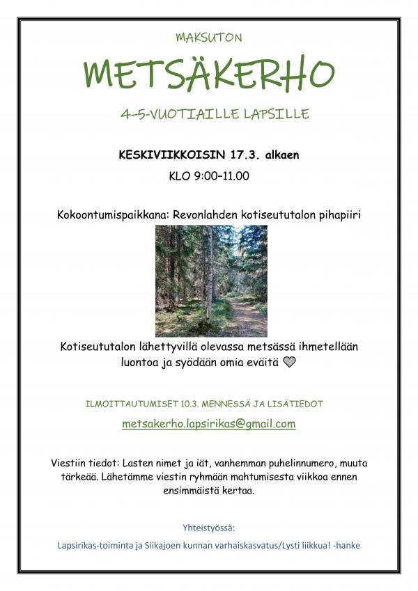MAKSUTON METSÄKERHO 4–5-VUOTIAILLE LAPSILLE