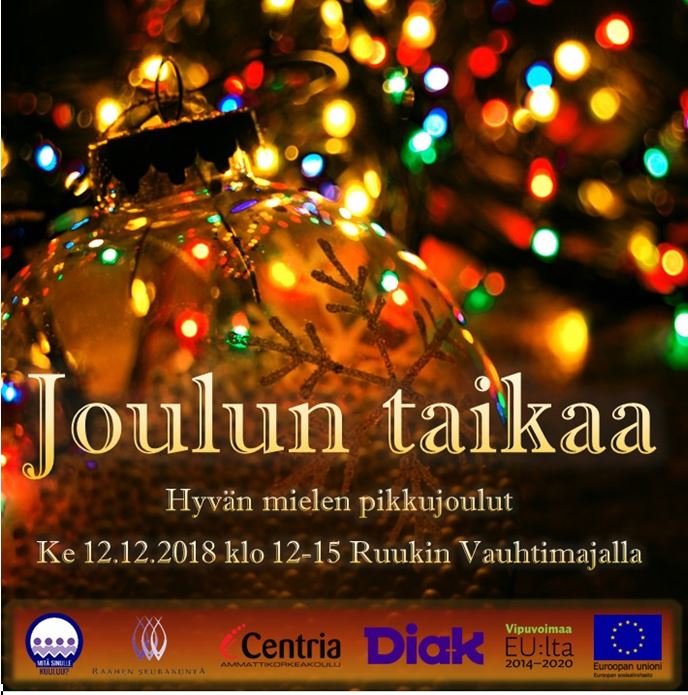 Mukana taikuri Elias Kvist. Tarjolla on jouluinen herkkumenu. Tapahtuma on kaikille siikajokisille avoin ja maksuton. Varaa paikkasi perjantaihin 7.12. mennessä Sanna Roukalalta p. 040 6710702 . Mukaan mahtuu 40 ensimmäiseksi ilmoittautunutta.