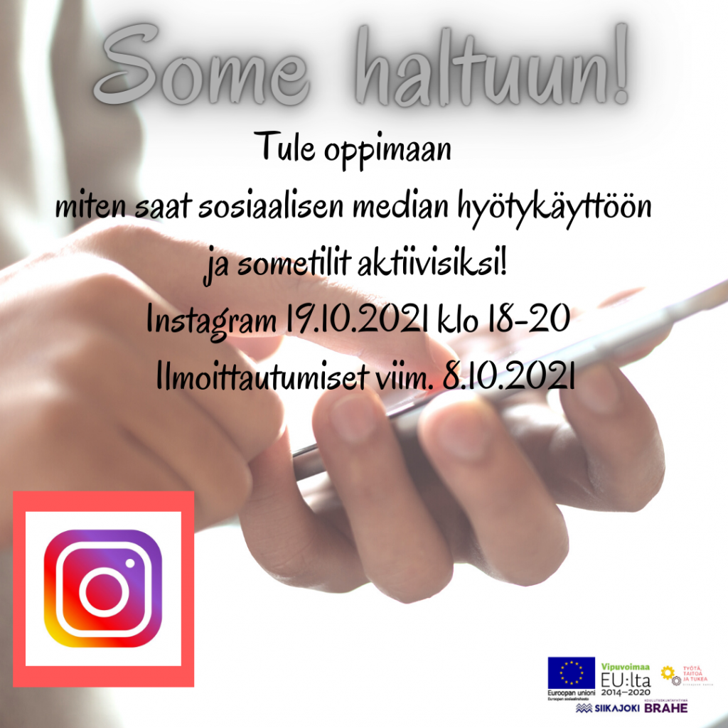 Ilmoittautumiset 8.10.2021 mennessä https://tyota-taitoa-ja-tukea-hanke.webnode.fi/sosiaalisen-median-kurss…