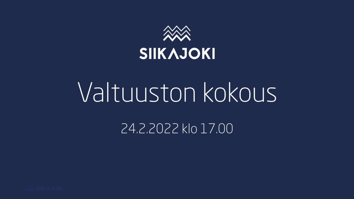 Siikajoen valtuuston kokous pidetään etäyhteydellä torstaina 24.2.2022 klo 17.00. Yleisölle kokous on seurattavissa suorana Siikajoen Youtube-kanavan kautta. Kokouksessa käsitellään kunnan verkkosivuilla sekä julkisten kuulutusten ilmoitustaululla olevassa kokouskutsussa luetellut asiat.