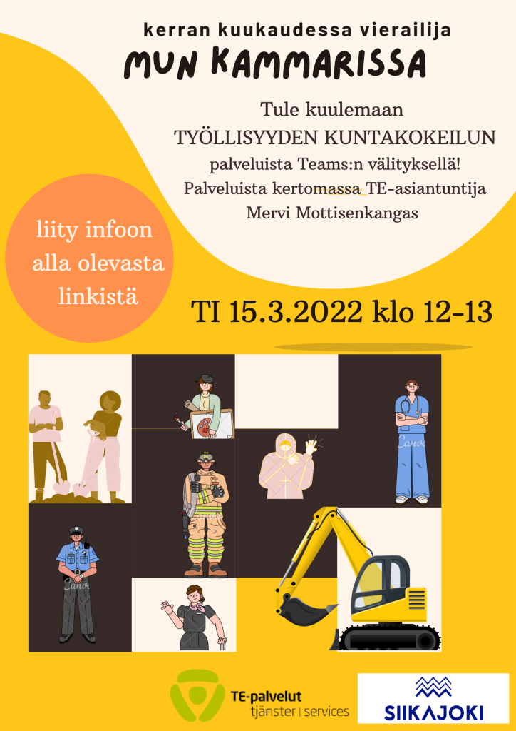 TE-asiantuntija Mervi Mottisenkangas kertoo työllisyyden kuntakokeilun palveluista sekä vastaa kysymyksiin Teamsin välityksellä.