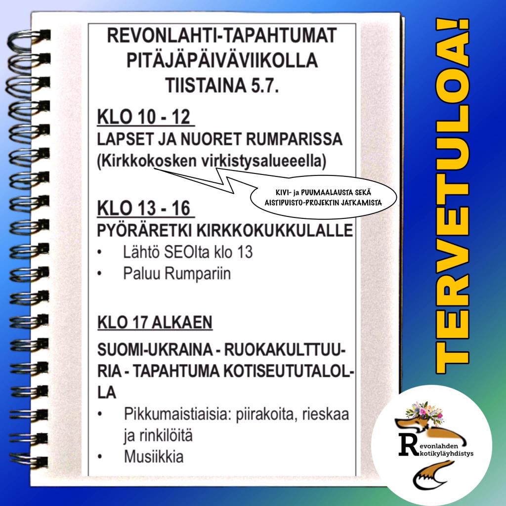 Revonlahti-tapahtumat pitäjäpäiväviikon tiistaina: