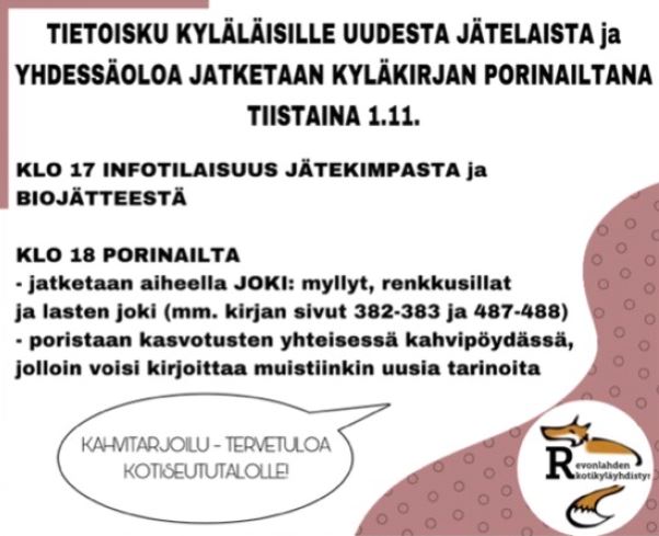 Tietoisku kyläläisille uudesta jätelaista ja yhdessäoloa jatketaan kyläkirjan porinailtana.