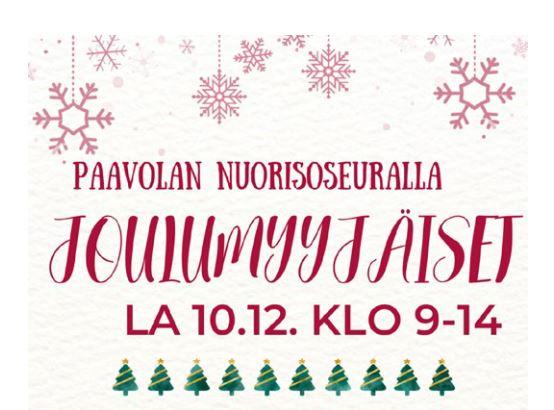 Paavolan nuorisoseuralla Joulumyyjäiset lauantaina 10.12. klo 9 -14.