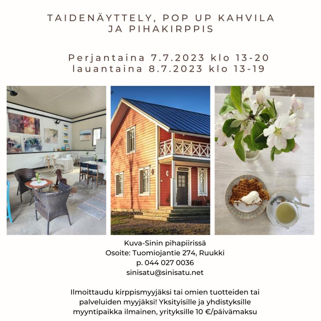 Kaikille avoin pihatapahtuma, taidenättely ja taidekahvila Kuva-Sinin pihapiirissä, osoitteessa Tuomiojantie 274, 92400 Ruukki.