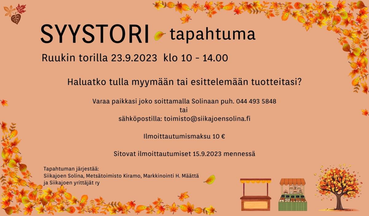 Syystori-tapahtuma Ruukin torilla 23.9.2023 klo 10-14.