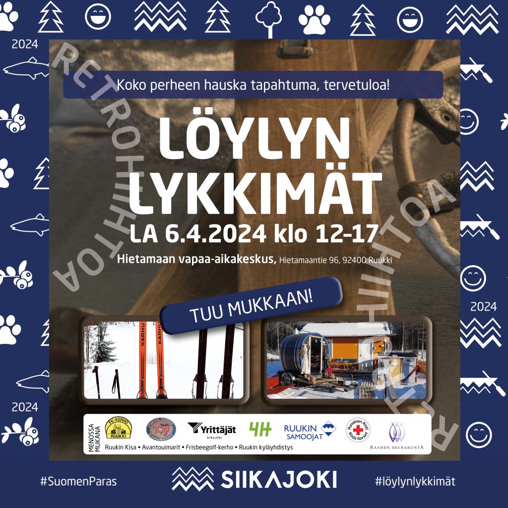 Löylyn lykkimät -tapahtumassa vain mielikuvitus luo rajat. Tiedossa on Hietamaalla lammen ympärihiihtoa retrohengessä. Matka on n. 600 m. Asu on vapaa, mutta pakollinen. Nyt mielikuvitus lentämään hullun hauskaan asuvalintaan. Tyyli on vapaa!