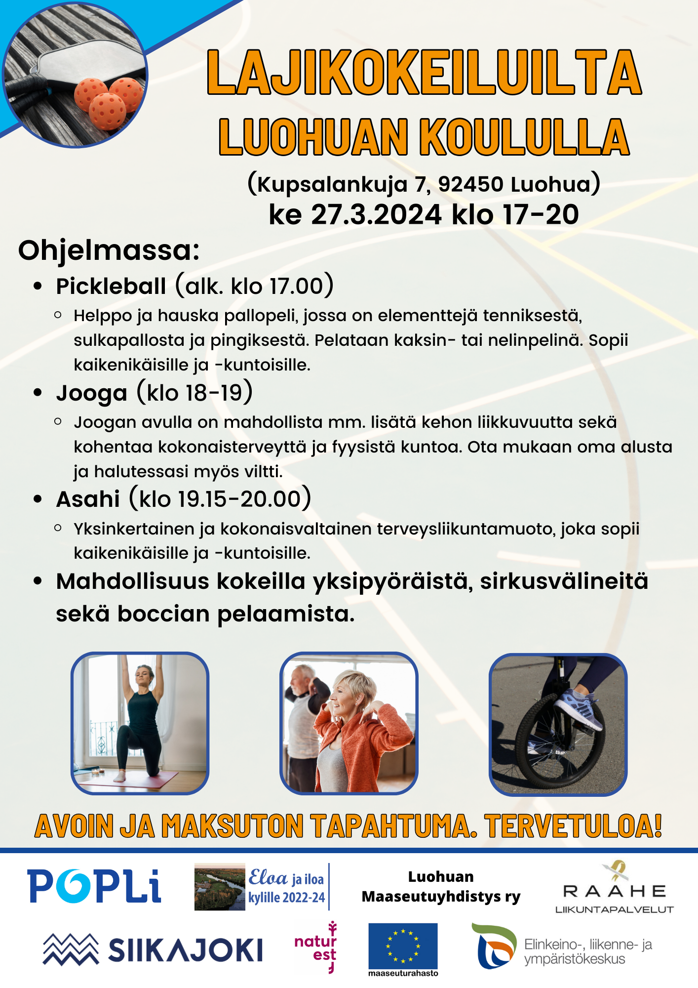 Tervetuloa lajikokeiluiltaan Luohuan koululle 27.3. klo 17-20!