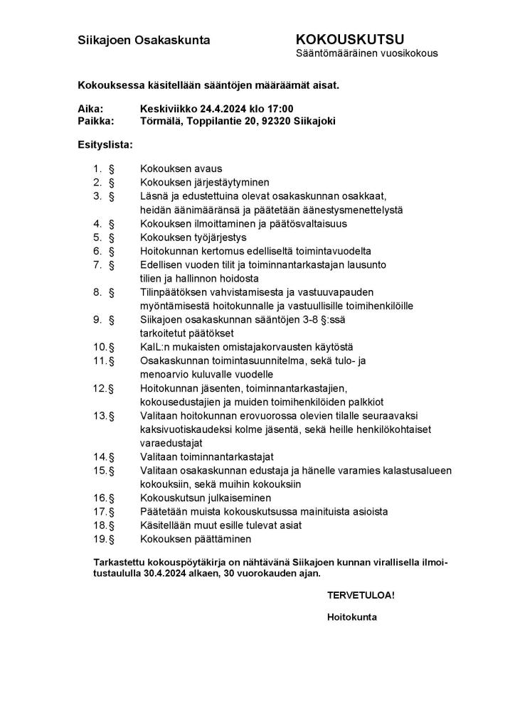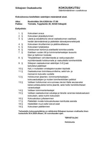 SÄÄNTÖMÄÄRÄISEEN VUOSIKOKOUKSEEN 24.4.2024 klo 17:00