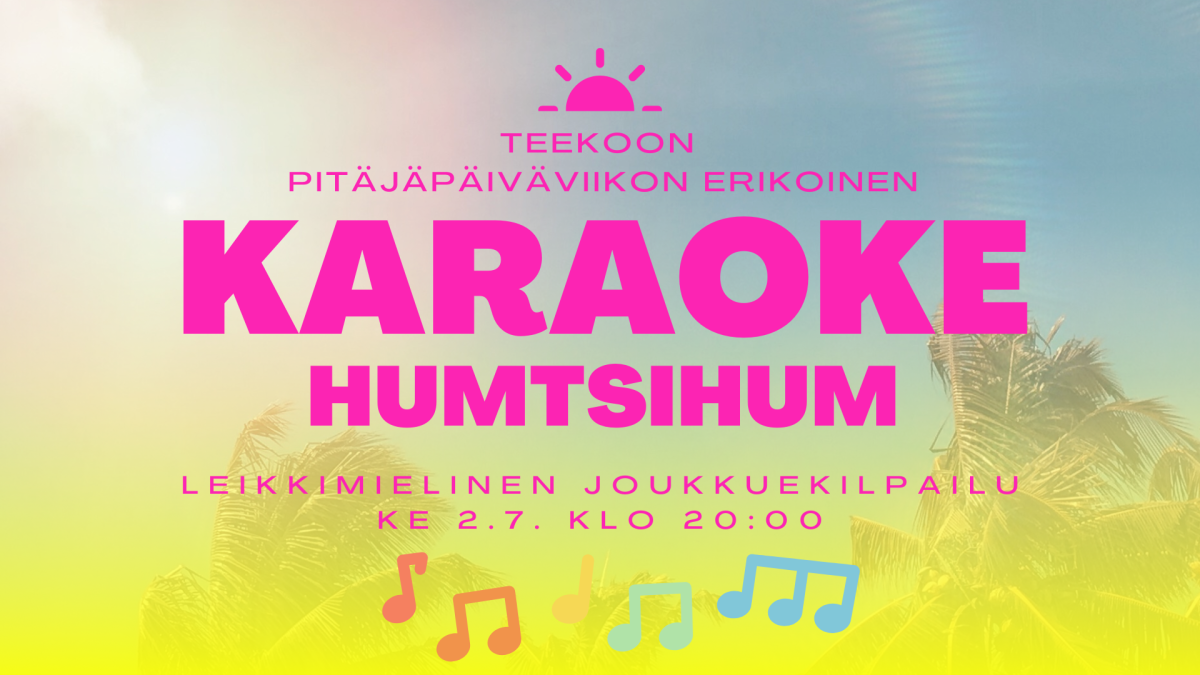Leikkimielinen joukkukilpailu (saa osallistua myös soolona!) karaoken tahtiin. Arvatkaa oikea kappale mahdollisimman nopeasti ja ilmoittakaa tiedostanne laulaen kyseistä kappaletta.