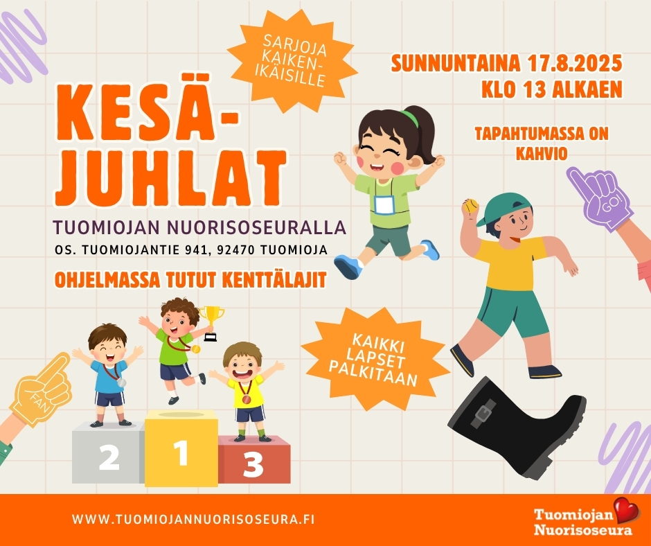 Perinteiset kesäjuhlat urheilukilpailuineen su 17.8. klo 13.