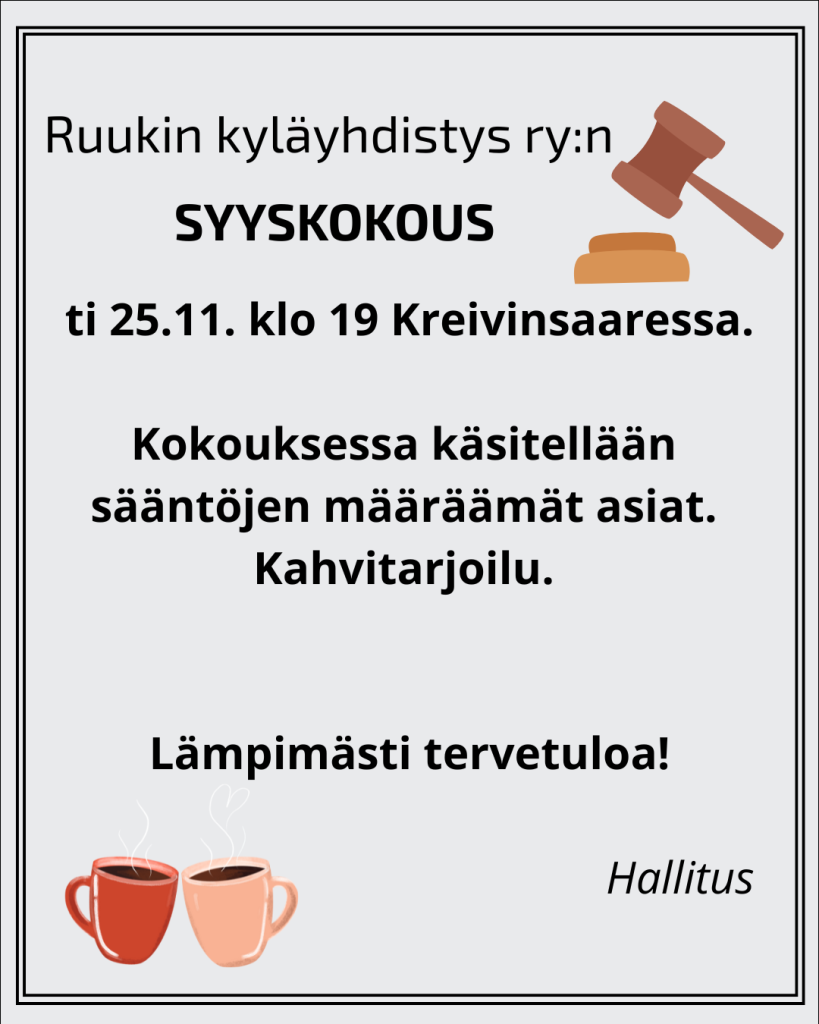 Ruukin kyläyhdistys ry:n sääntömääräinen syyskokous