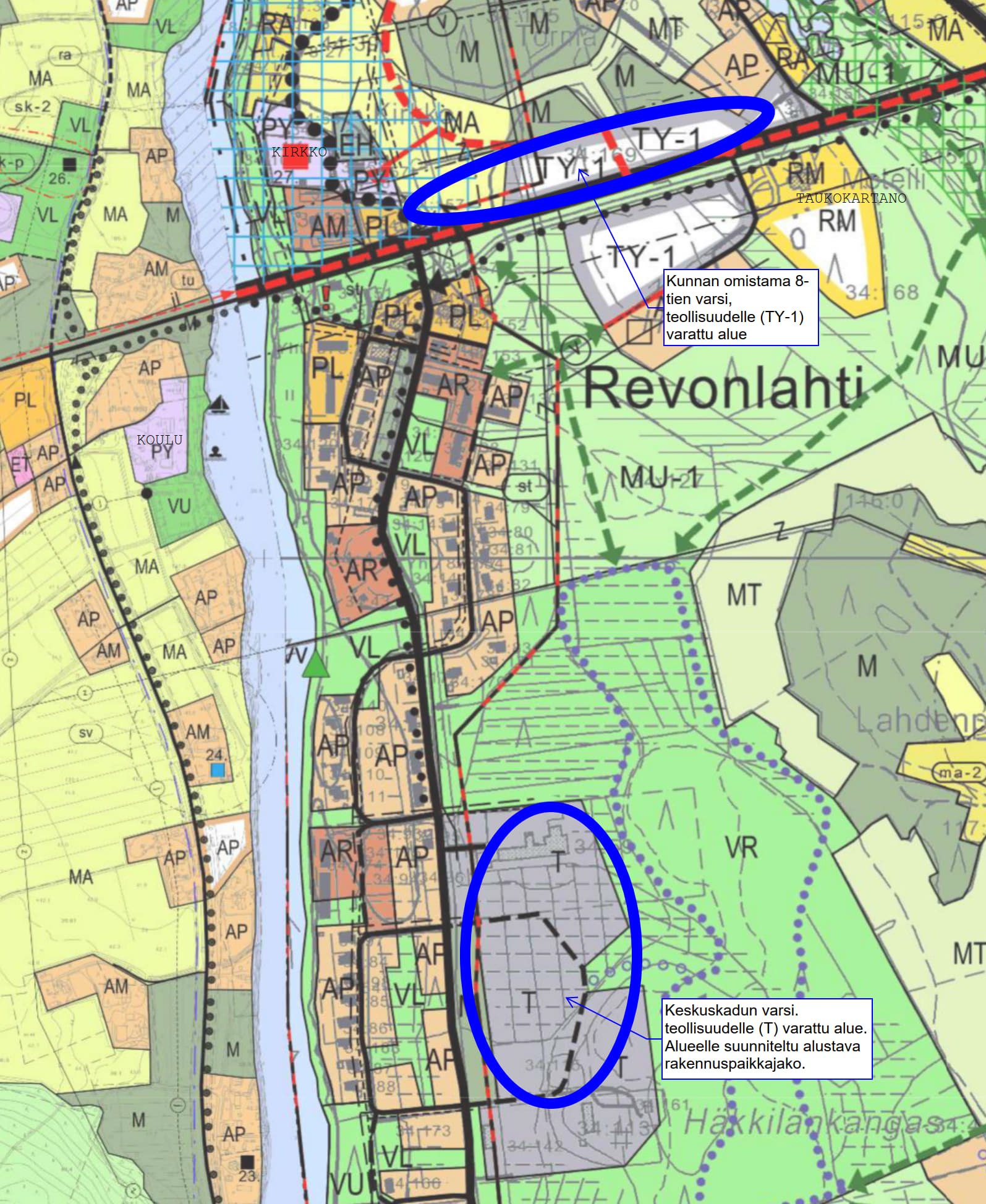 Revonlahden osayleiskaava. Teollisuusalueet Kasitien ja Keskuskadun varrella.
